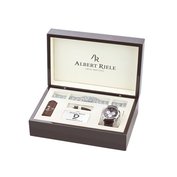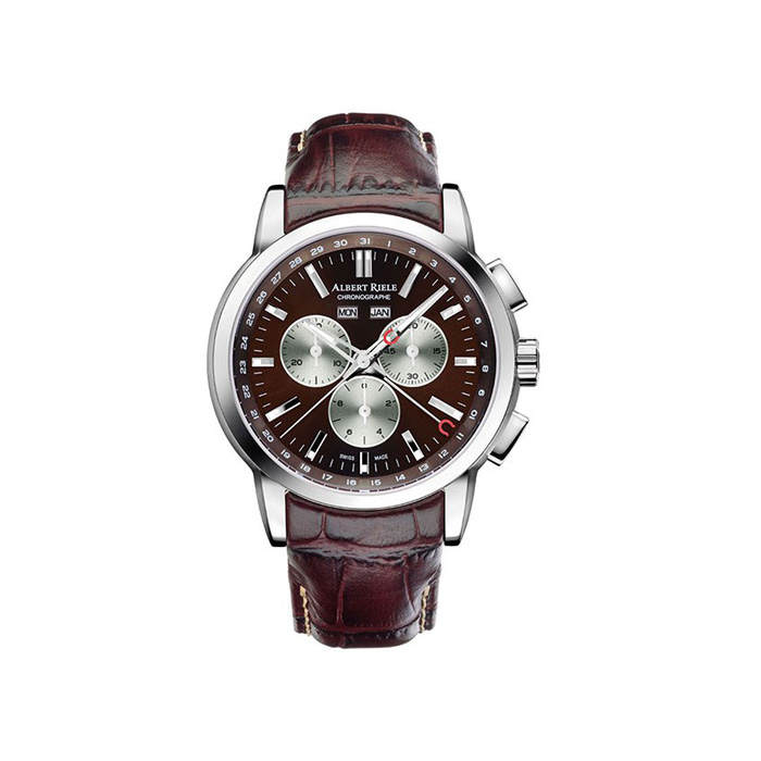 ساعت مچی «آلبرت ریله» (Albert Riele) مدل «711GQ07-SS83I-LN-K1» از شیک‌ترین و لوکس‌ترین ساعت‌های کلاسیک‌اسپرت سوییسی و از جمله مدل‌های تولید محدود بوده که تنها 250 عدد از آن تولید شده است. این مدل طراحی فوق‌العاده جذاب و دقت و کیفیتی بالا دارد و در یک بسته‌بندی لوکس همراه یک بند استیل اضافه طراحی شده است تا بیش‌ازپیش توجه آقایان شیک‌پوش و طرفداران این اکسسوری لوکس را به خود جلب کند. ترکیب رنگ قهوه‌ای و نقره‌ای و چیدمان بسیار زیبای صفحه از عوامل بسیار مهم در جذابیت ظاهری این ساعت هستند. شیشه‌ی سافایر و ضدخش و جنس استیل بدنه و کیفیت بالای هر دو بند از مشخصات کیفی این محصول به‌شمار می‌روند که نشان از کیفیت و ماندگاری بالای آن دارند. روی صفحه شاهد تعبیه‌ی سه تاریخ‌شمار هستیم که با کرنوگرافی کامل و کارآمد همراه شده است. دو تاریخ‌شمار بالای صفحه، نام روز هفته و نام ماه میلادی را نمایش می‌دهند و عقربه‌ی چهارمی که در مداری 31 عددی می‌چرخد، شماره‌ی روز ماه را بر روی حاشیه‌ی صفحه نشان می‌دهد. کرنوگراف یا زمان‌سنج ساعت هم از سه صفحه‌ی فرعی و نقره‌‌ای‌رنگ برخوردار است که عبارت‌اند از: یک شمارشگر دهم ثانیه، یک ثانیه‌شمار و یک دقیقه‌شمار سی‌دقیقه‌ای. نشانگرهای خطی برجسته و چاپی، عقربه‌های اصلی بزرگ و شب‌تاب و ثانیه‌شماری زیبا و سوزنی‌شکل دیگر عناصری هستند که روی این صفحه مشاهده می‌شوند. مقاومت مطلوب در برابر آب هم در شرایط روزمره نظیر شست‌وشوی دست یا بارش باران، از نفوذ آب جلوگیری می‌کند. درمجموع این ساعت تولید محدود لوکس و جذاب را می‌توان یکی از بهترین گزینه‌ها برای آقایان شیک‌پوش در هر سن برشمرد. با توجه به مشخصات یادشده و همچنین بسته‌بندی مشابه ست هدیه و بهره‌مندی از دو بند متفاوت، می‌توان این مدل را به‌عنوان هدیه‌ای لوکس، ارزشمند و ماندگار نیز در نظر گرفت.